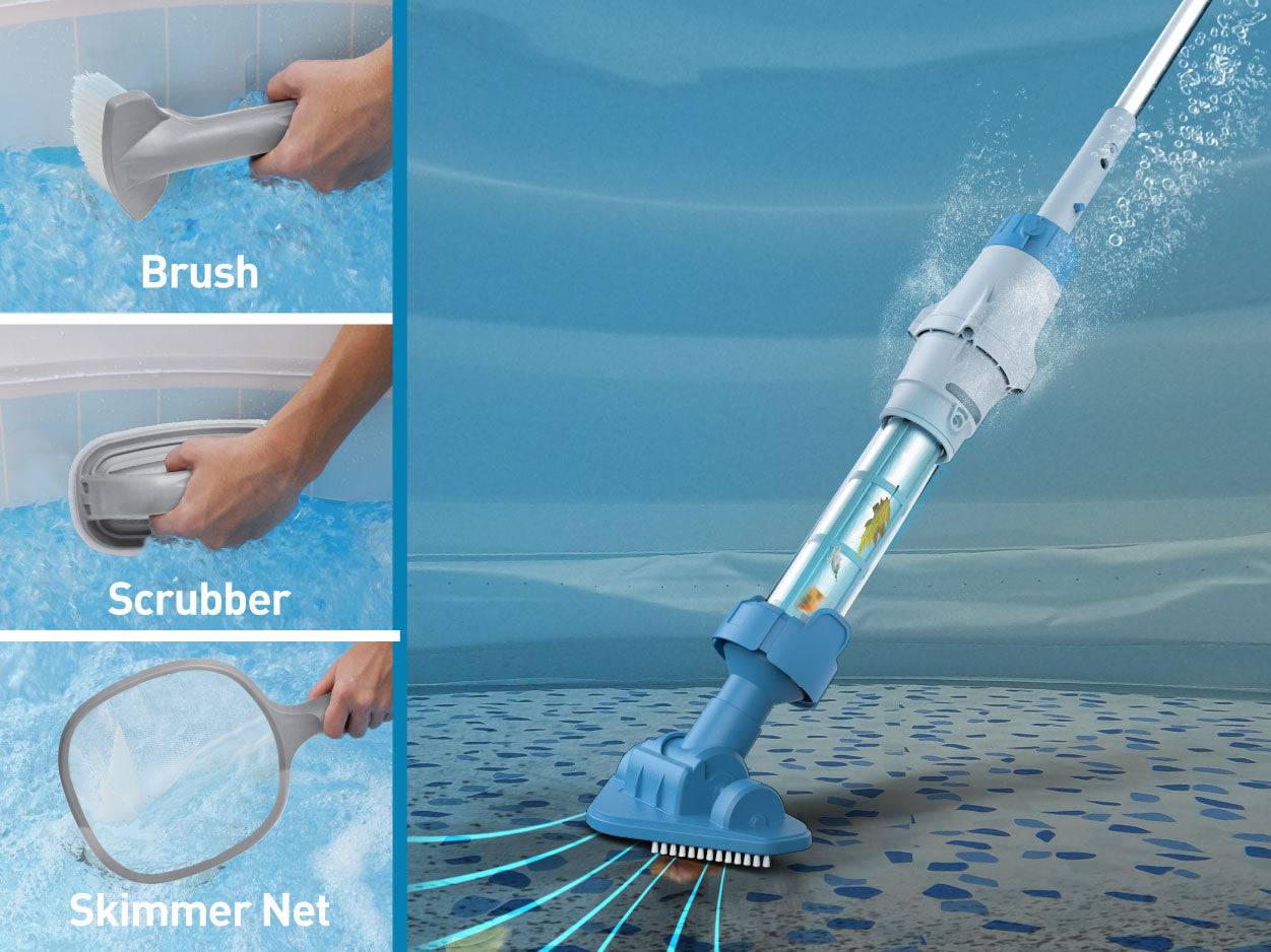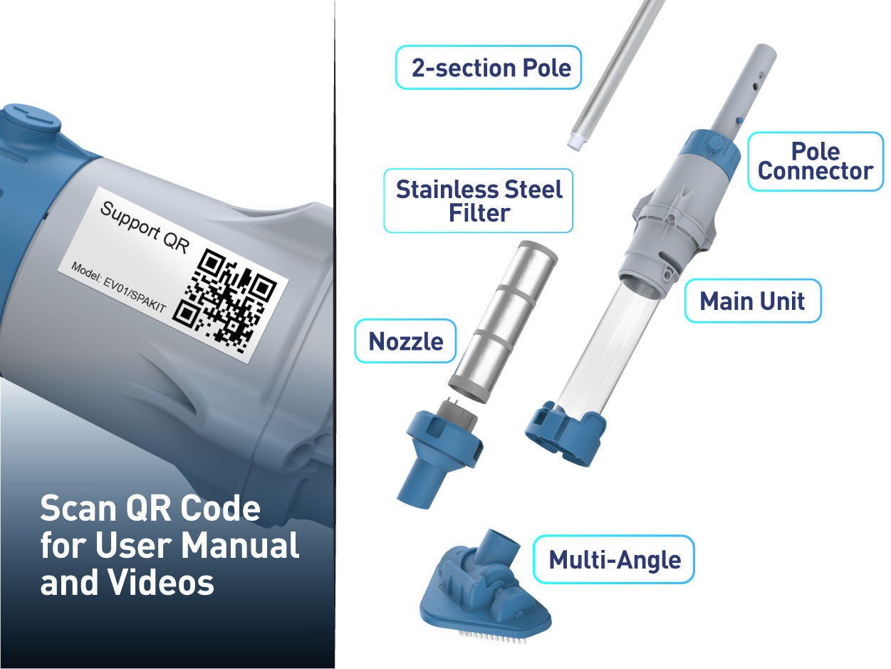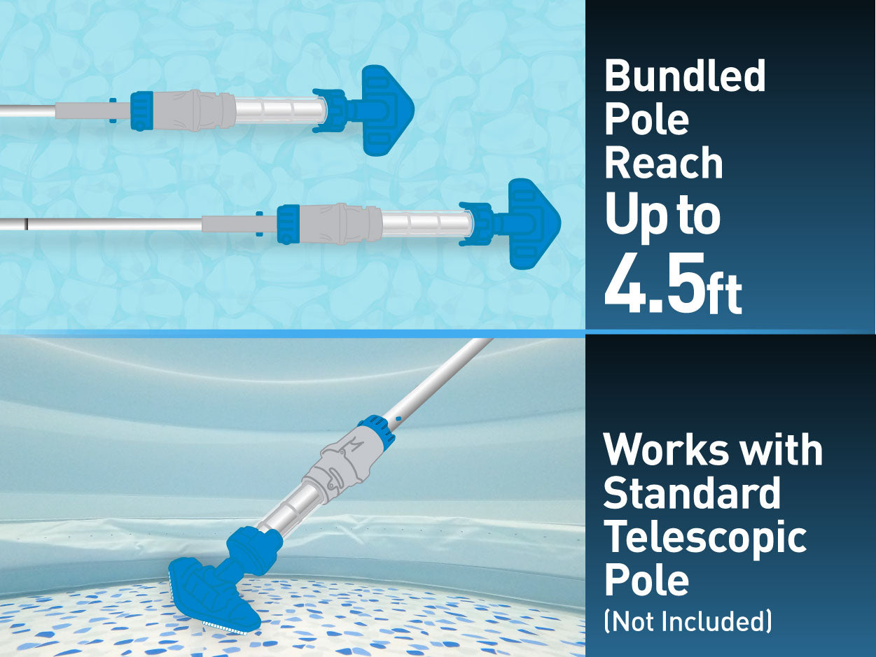 The XTROVAC 100 comes with a 2-section aluminum pole, and it can reach a max depth of 4.5ft.