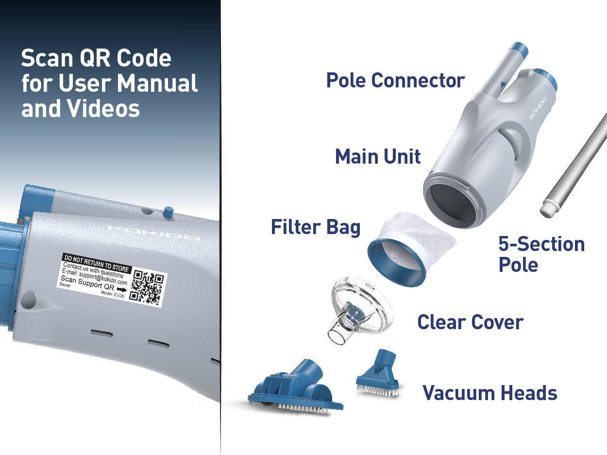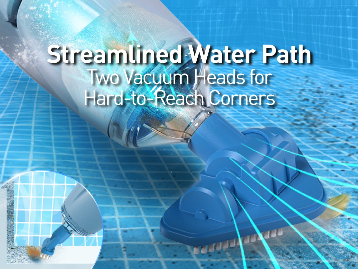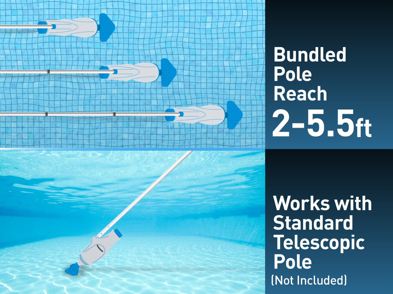 The XTROVAC 110 comes with a 5-section aluminum pole, and it can reach a max depth of 6.5ft.